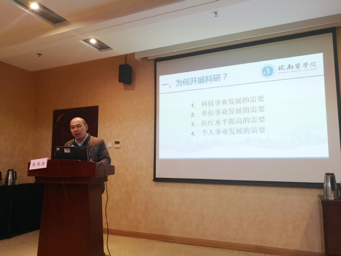 座谈会后,朱再满、李怀斌分别做了题为“牢记医者初心,开展科研探索,提升医疗水平”、“国家自然科学基金项目申请有关政策解读及注意事项” 的科研项目申报专题辅导讲座,讲座由章如平主持,医院科研相关医护员工百余人参加了学习。